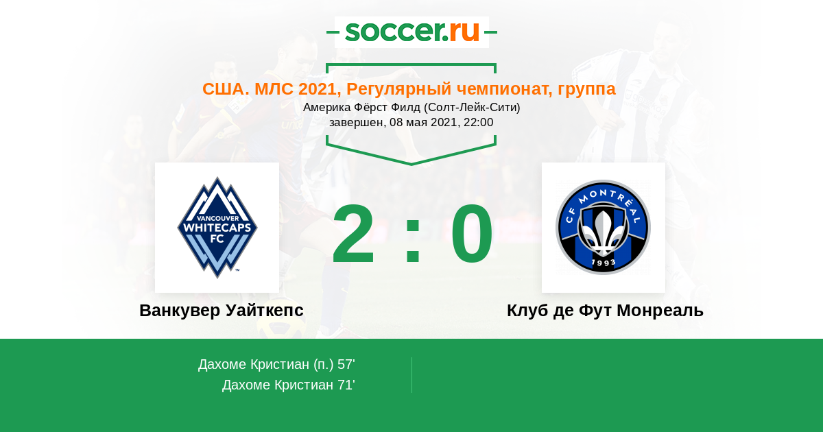 Протокол матча Ванкувер Уайткепс против Клуб де Фут Монреаль