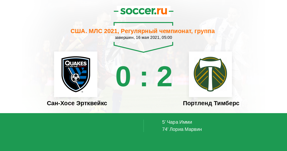 Протокол матча Сан-Хосе Эртквейкс против Портленд Тимберс