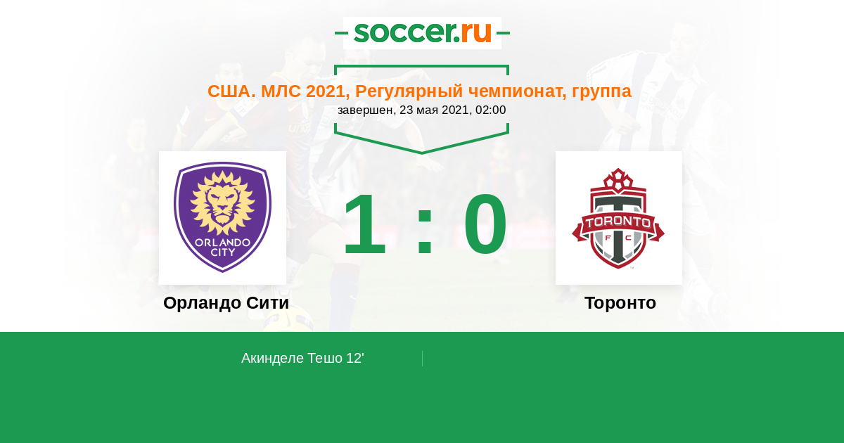 Протокол матча Орландо Сити против Торонто