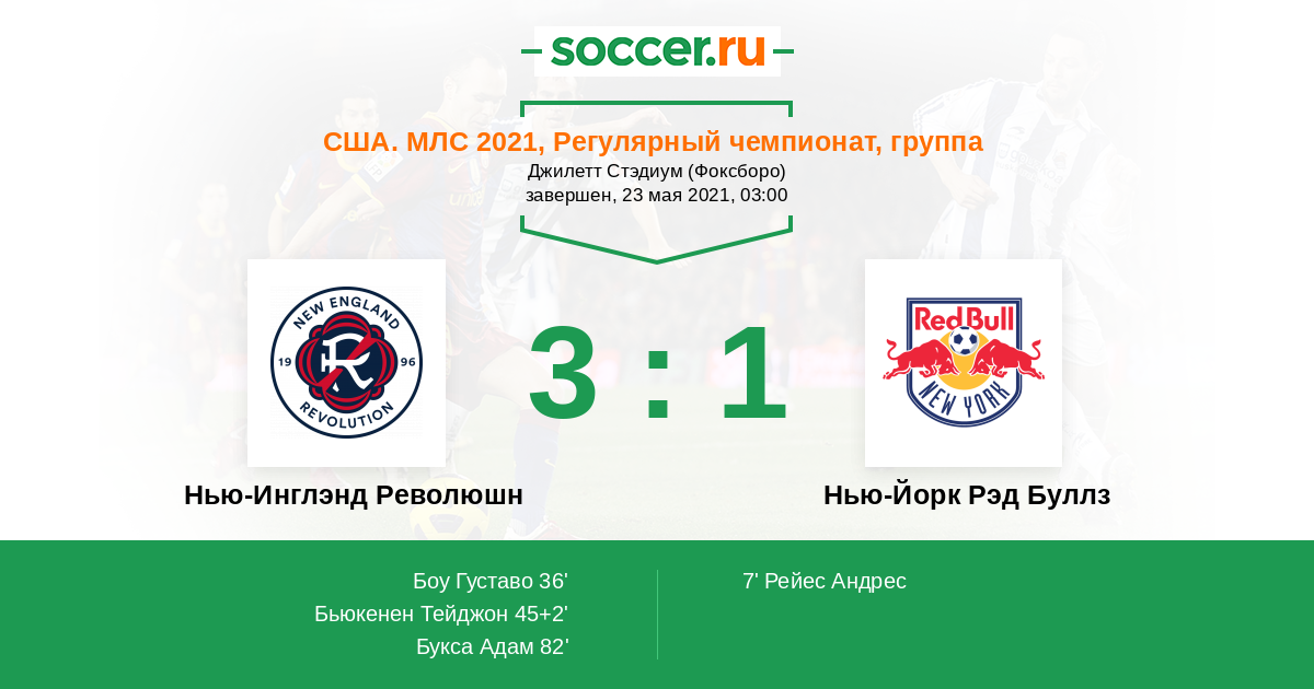 Протокол матча Нью-Инглэнд Революшн против Нью-Йорк Рэд Буллз