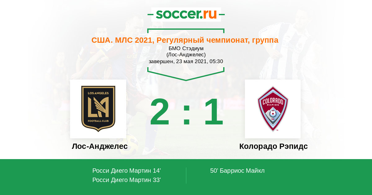 Протокол матча Лос-Анджелес против Колорадо Рэпидс
