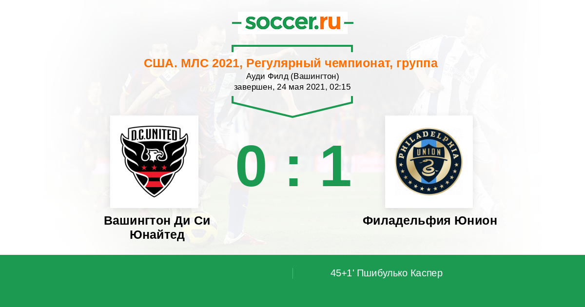 Протокол матча Вашингтон Ди Си Юнайтед против Филадельфия Юнион