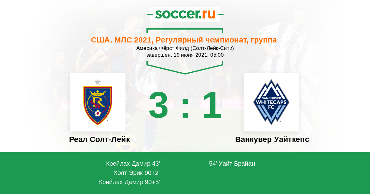 Протокол матча Реал Солт-Лейк против Ванкувер Уайткепс