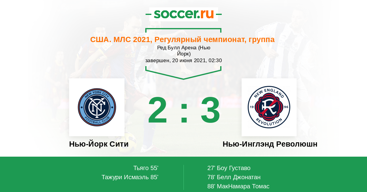 Протокол матча Нью-Йорк Сити против Нью-Инглэнд Революшн