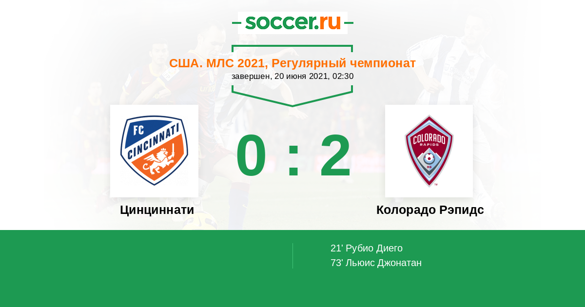 Протокол матча Цинциннати против Колорадо Рэпидс