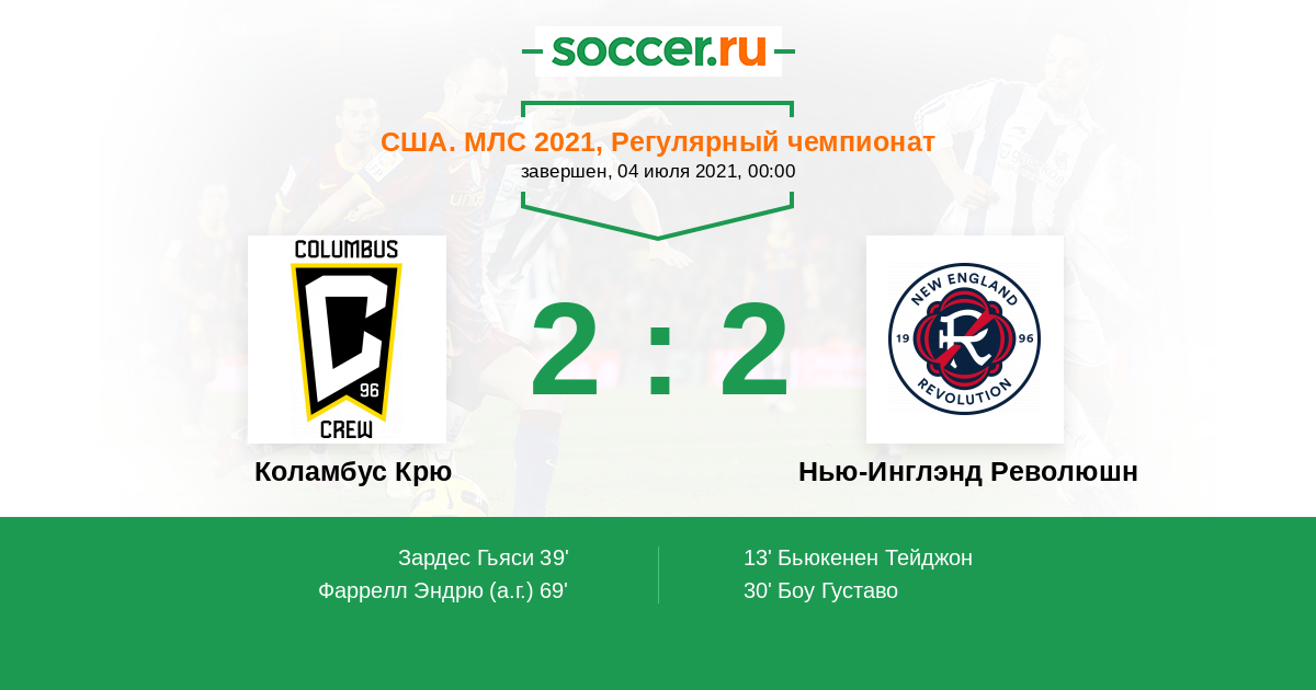 Протокол матча Коламбус Крю против Нью-Инглэнд Революшн