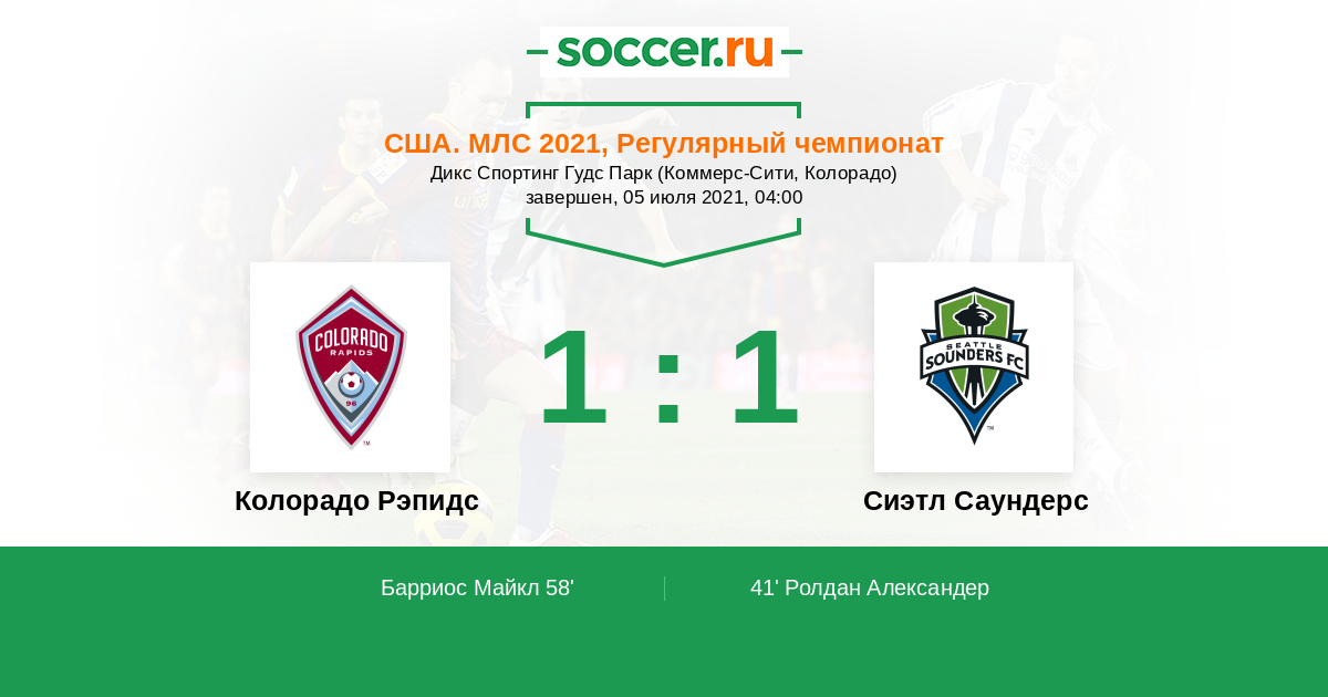 Протокол матча Колорадо Рэпидс против Сиэтл Саундерс
