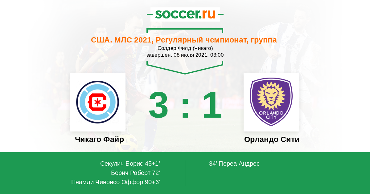 Протокол матча Чикаго Файр против Орландо Сити