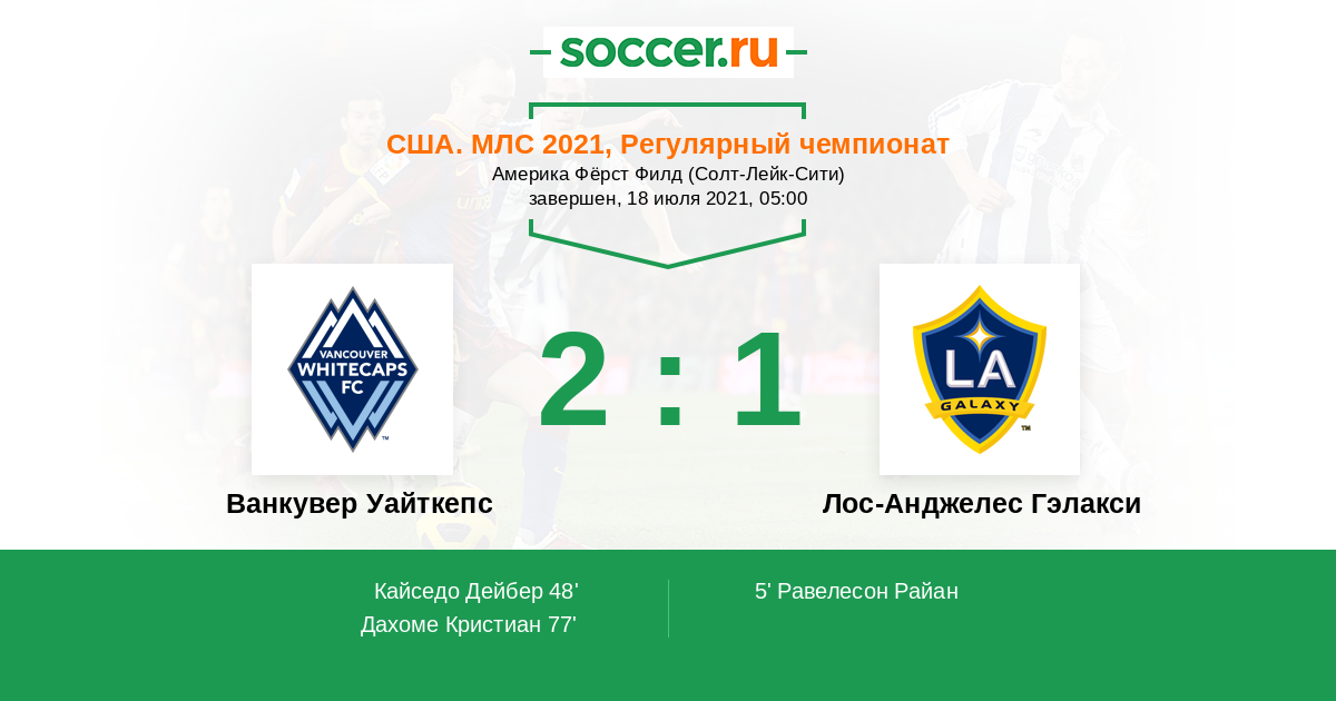 Протокол матча Ванкувер Уайткепс против Лос-Анджелес Гэлакси
