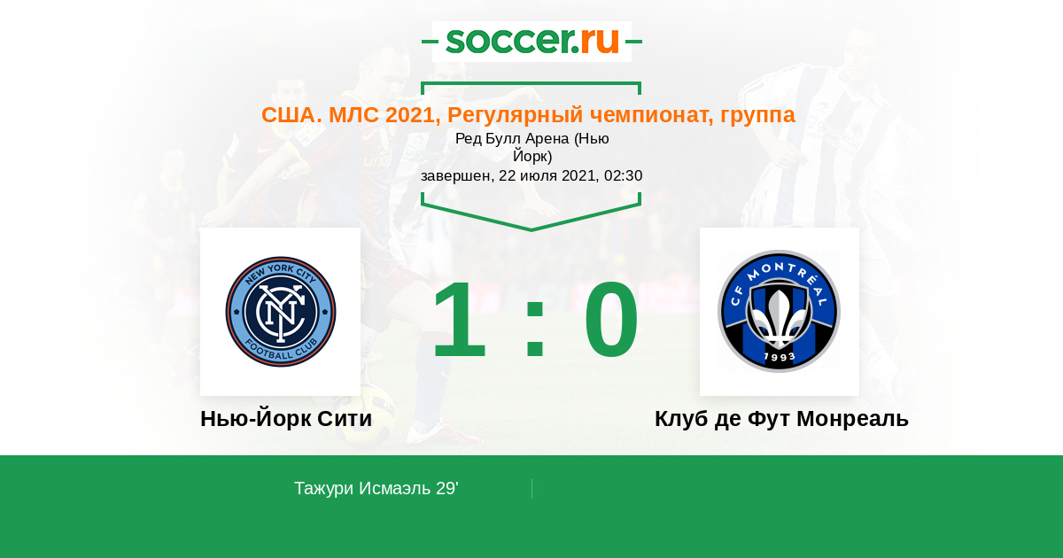 Протокол матча Нью-Йорк Сити против Клуб де Фут Монреаль