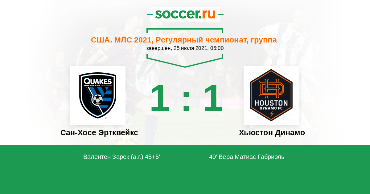 Протокол матча Сан-Хосе Эртквейкс против Хьюстон Динамо