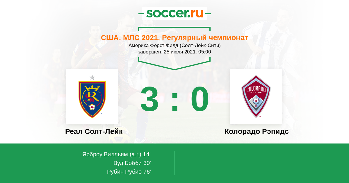 Протокол матча Реал Солт-Лейк против Колорадо Рэпидс