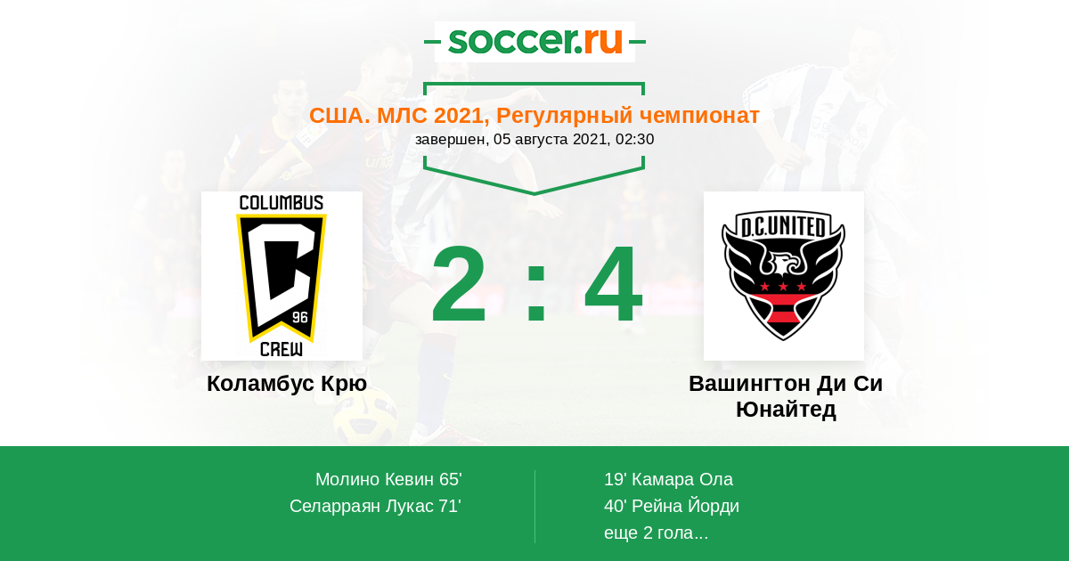 Протокол матча Коламбус Крю против Вашингтон Ди Си Юнайтед