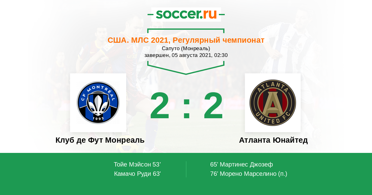 Протокол матча Клуб де Фут Монреаль против Атланта Юнайтед