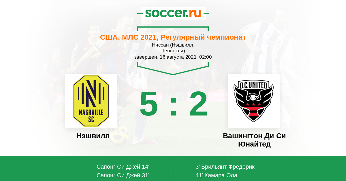 Протокол матча Нэшвилл против Вашингтон Ди Си Юнайтед