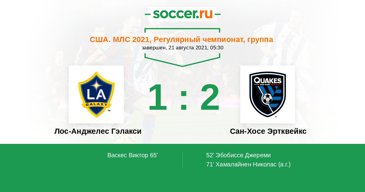 Протокол матча Лос-Анджелес Гэлакси против Сан-Хосе Эртквейкс