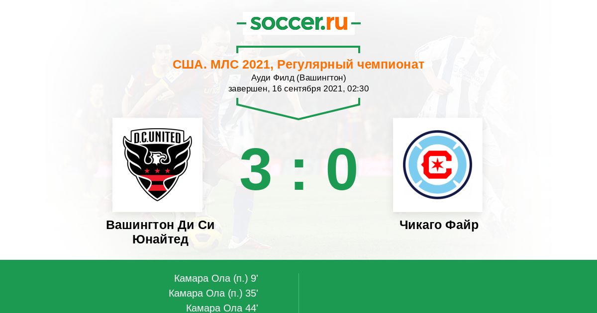 Протокол матча Вашингтон Ди Си Юнайтед против Чикаго Файр