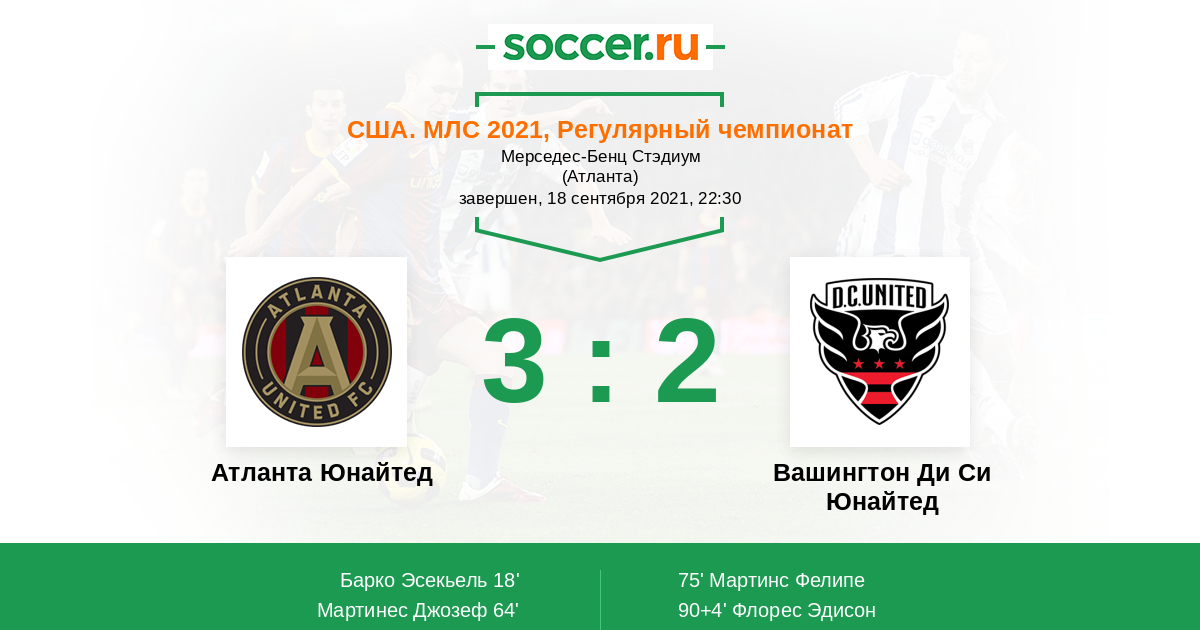 Протокол матча Атланта Юнайтед против Вашингтон Ди Си Юнайтед
