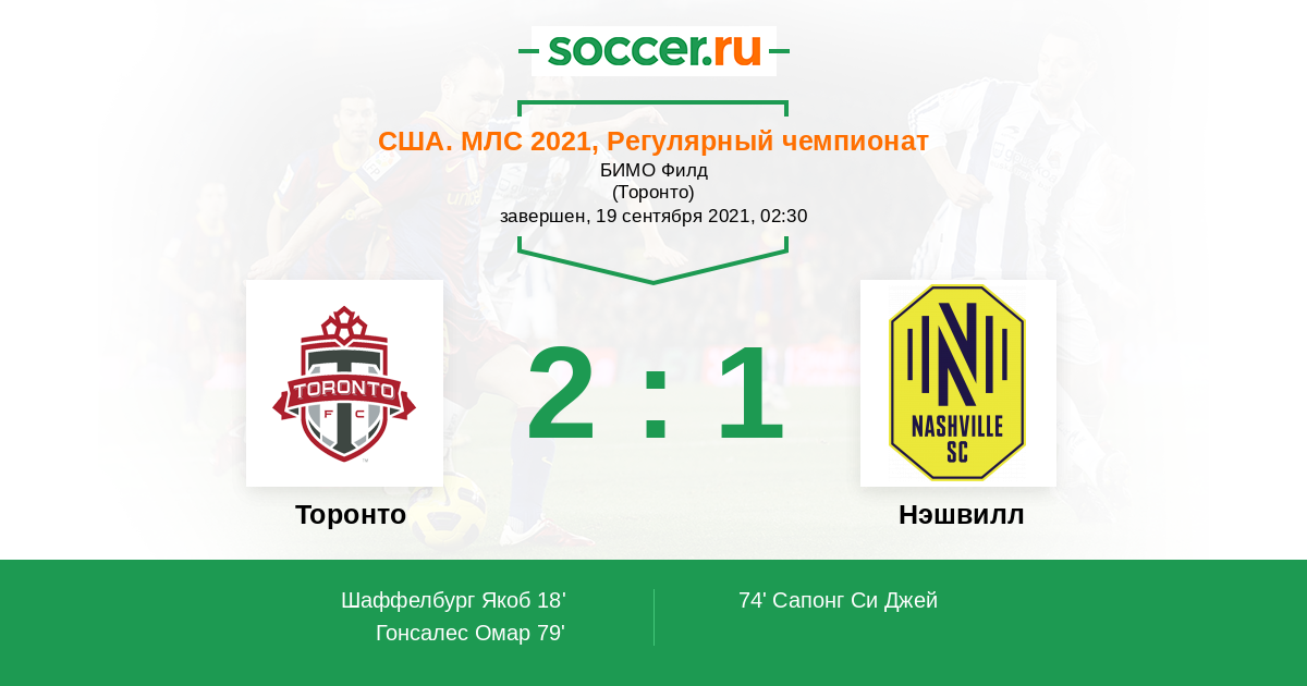 Протокол матча Торонто против Нэшвилл