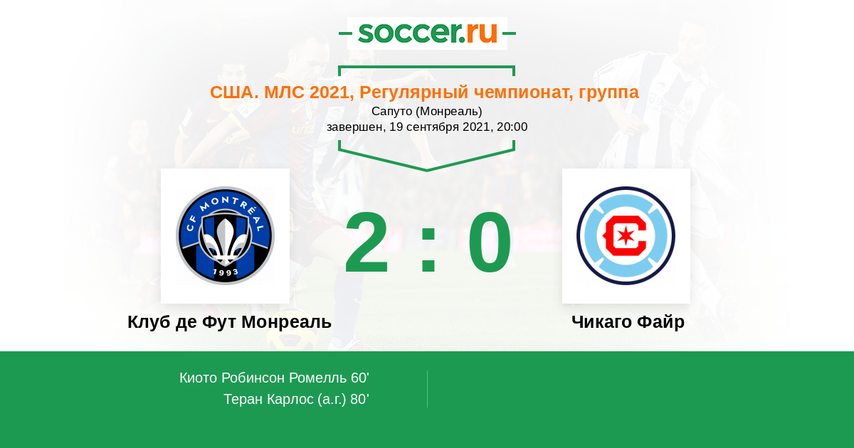 Протокол матча Клуб де Фут Монреаль против Чикаго Файр