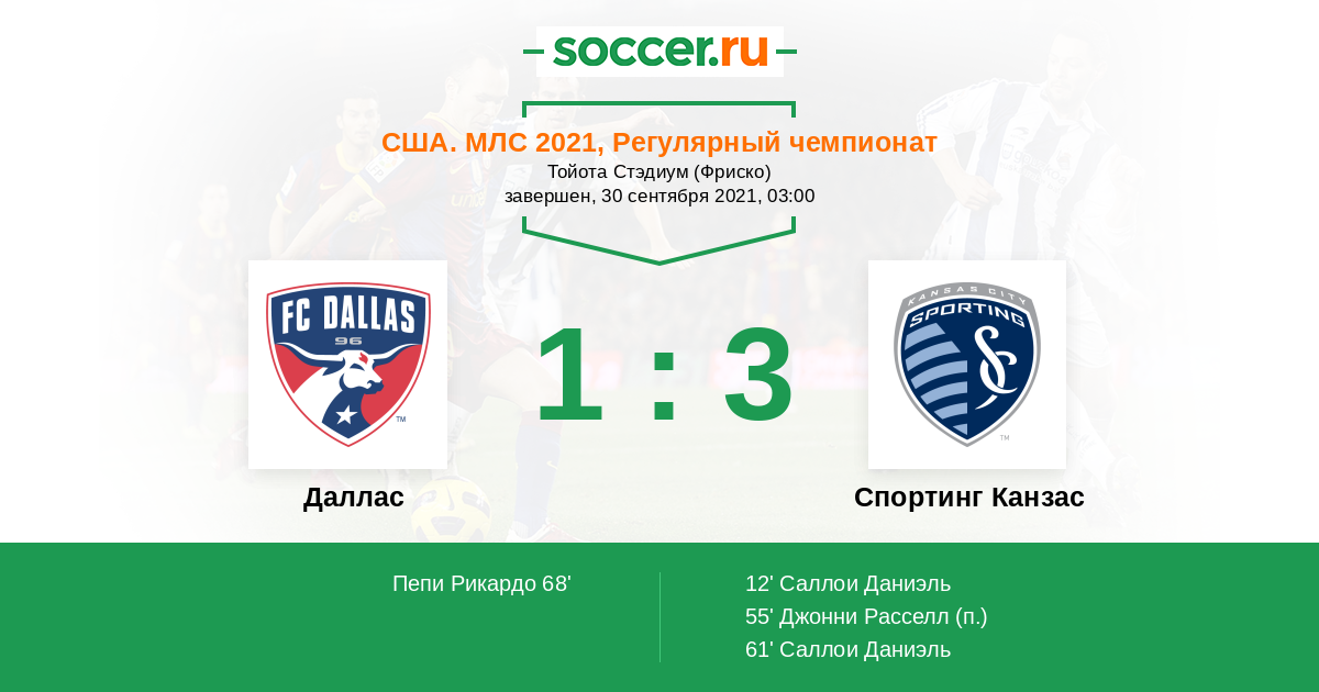 Протокол матча Даллас против Спортинг Канзас