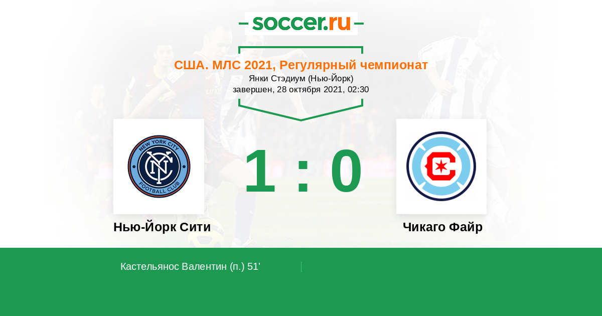 Протокол матча Нью-Йорк Сити против Чикаго Файр
