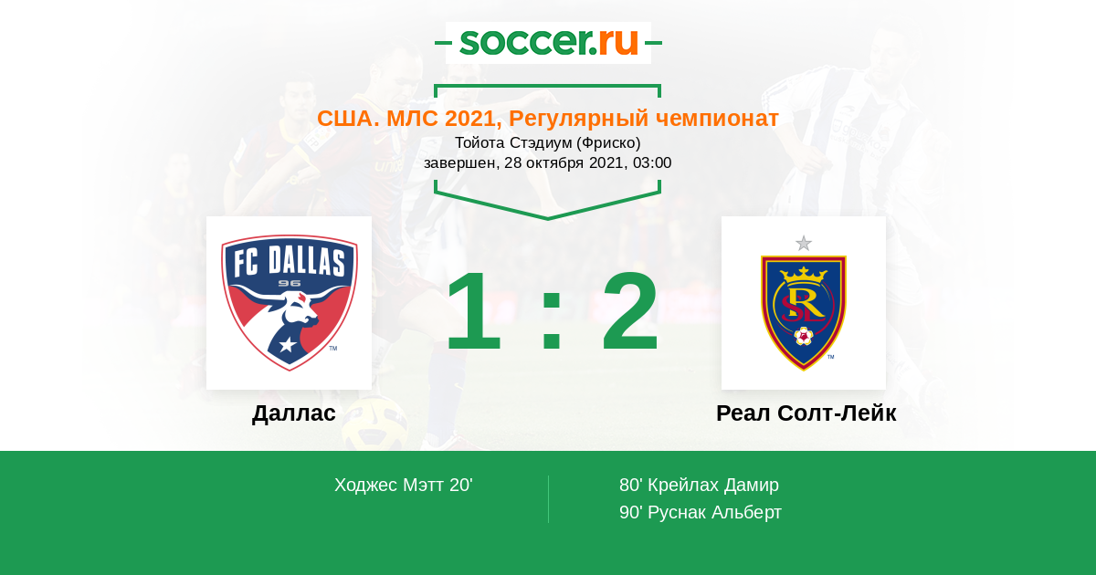 Протокол матча Даллас против Реал Солт-Лейк