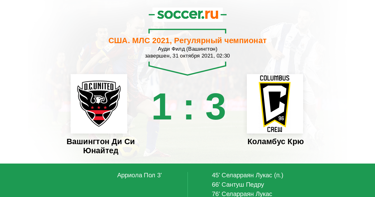 Протокол матча Вашингтон Ди Си Юнайтед против Коламбус Крю