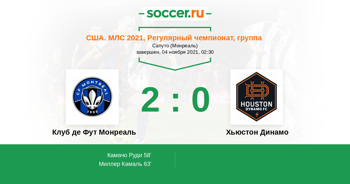 Протокол матча Клуб де Фут Монреаль против Хьюстон Динамо