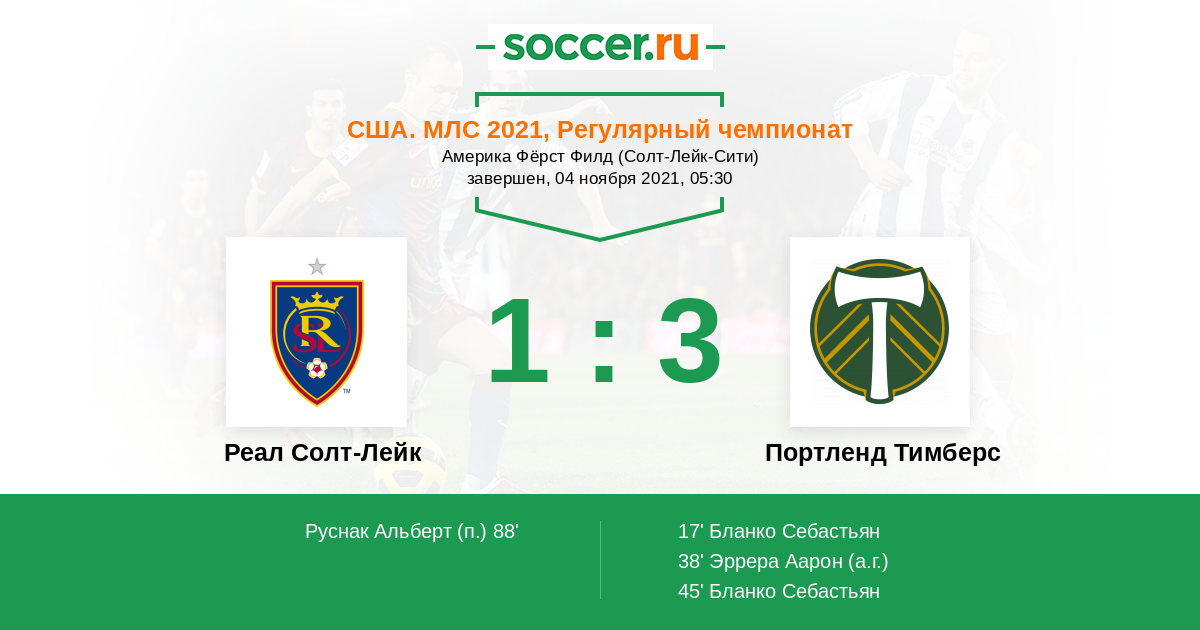 Протокол матча Реал Солт-Лейк против Портленд Тимберс