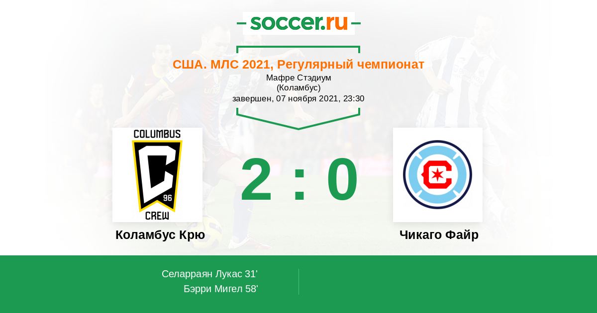 Протокол матча Коламбус Крю против Чикаго Файр