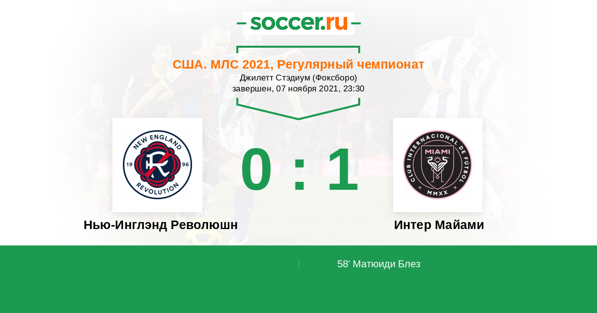 Протокол матча Нью-Инглэнд Революшн против Интер Майами