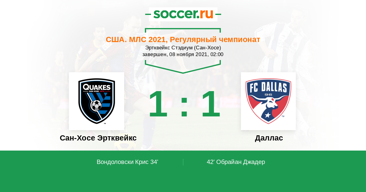 Протокол матча Сан-Хосе Эртквейкс против Даллас