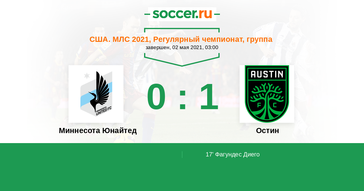 17' (0:1) Фагундес Диего (14) (Струд Джаред (20))
