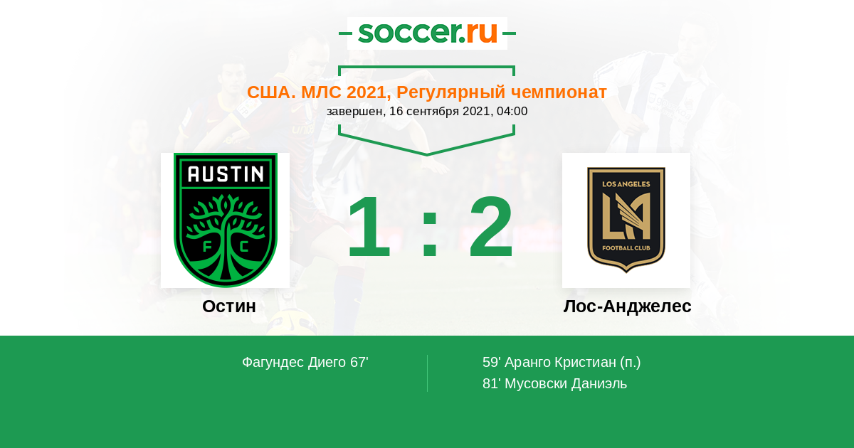 Протокол матча Остин против Лос-Анджелес