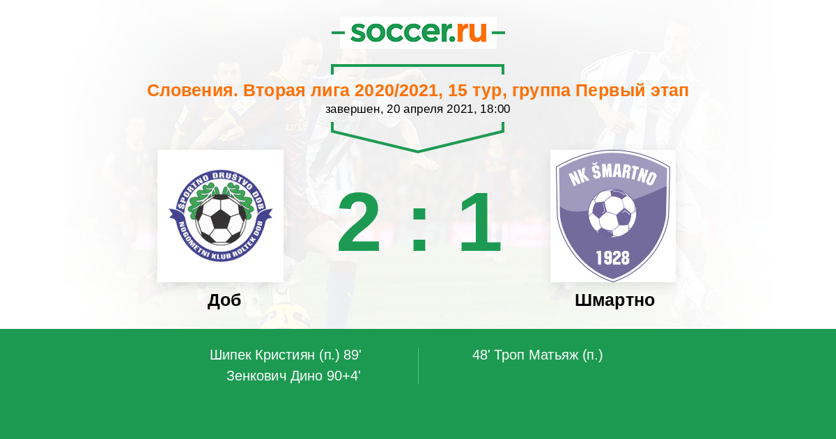 Протокол матча Доб против Шмартно