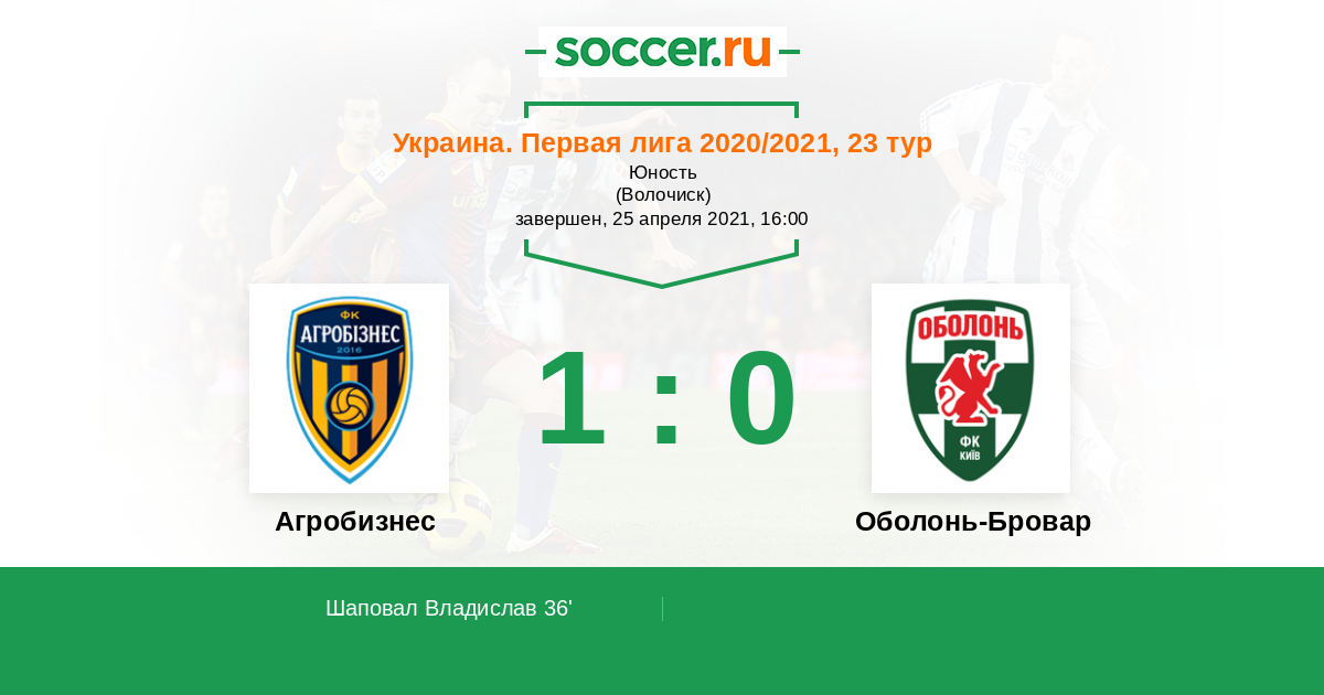 Протокол матча Агробизнес против Оболонь-Бровар