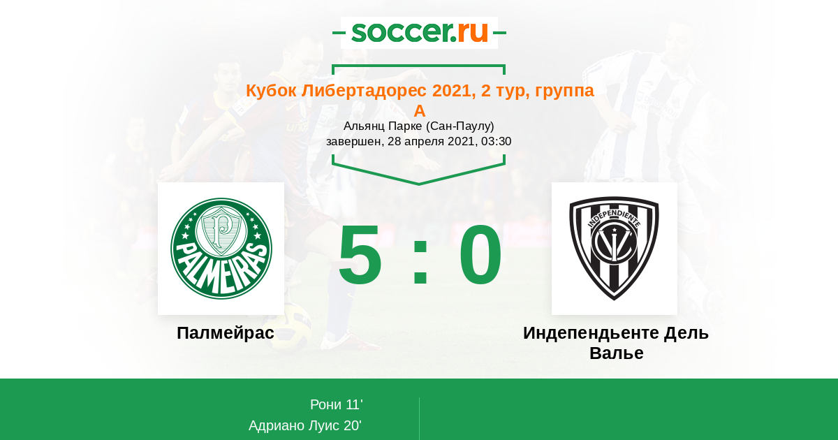 Протокол матча Палмейрас против Индепендьенте Дель Валье