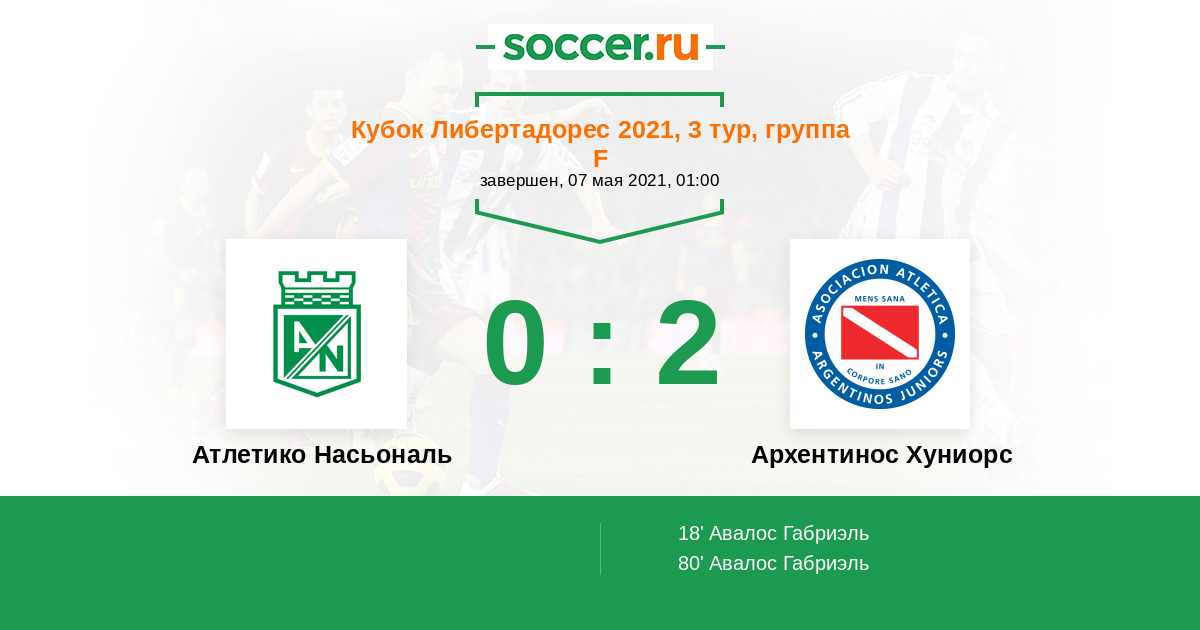 Протокол матча Атлетико Насьональ против Архентинос Хуниорс
