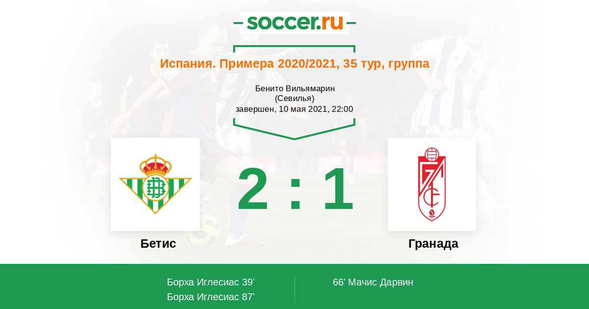 Победа Бетиса, которая выводит её  на место в групповую стадию Лиги Европы, должна быть хорошей мотивацией, чтобы выиграть в этом матче.  Хотя игра с Гранадой не будет лёгкой прогулкой. Удачи