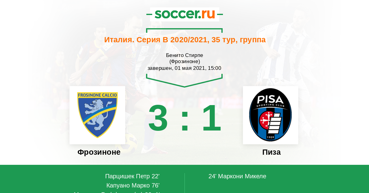 Протокол матча Фрозиноне против Пиза