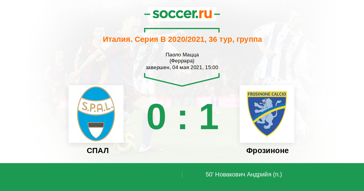 Протокол матча СПАЛ против Фрозиноне