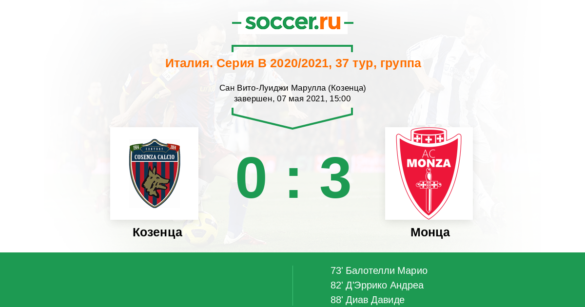 88' (0:3) Диав Давиде (66) (Балотелли Марио (45))