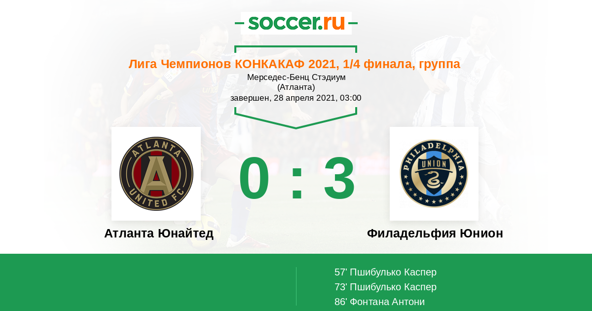 Протокол матча Атланта Юнайтед против Филадельфия Юнион