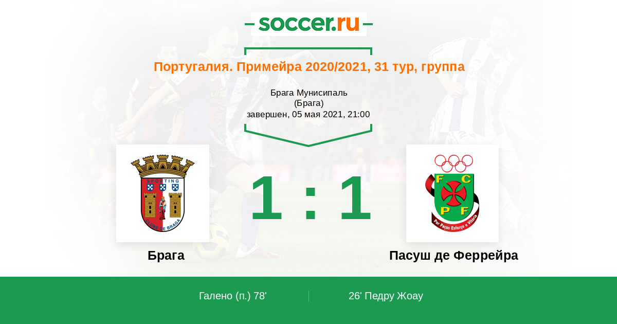 26' (0:1) Педру Жоау (45) (Амарал Жоау (77))