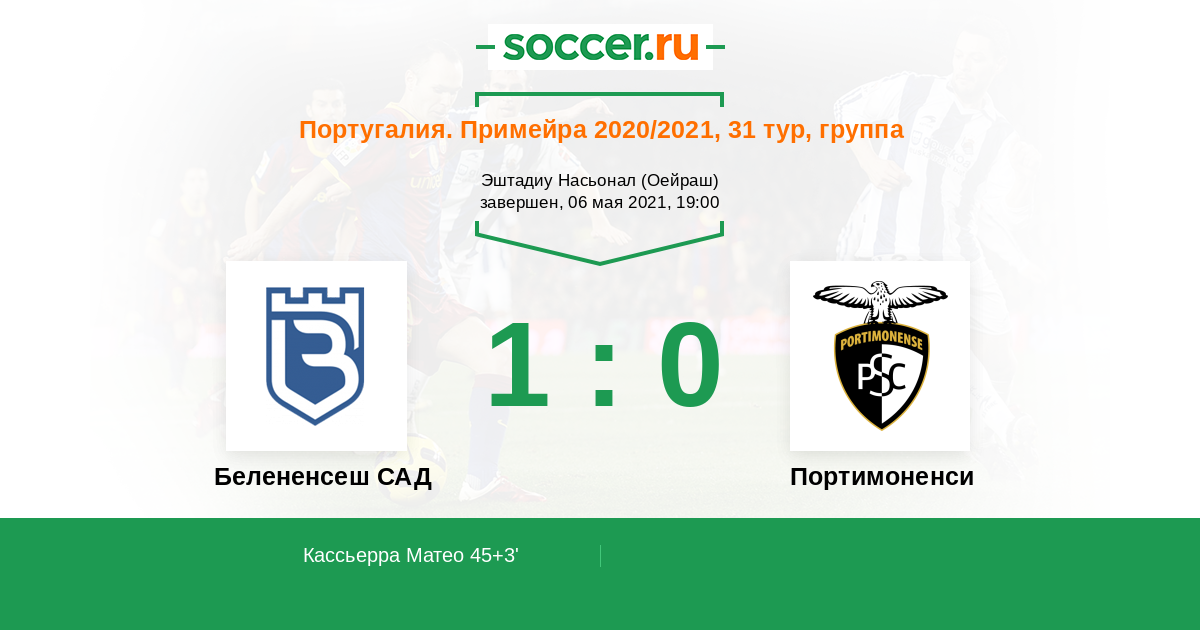 Протокол матча Белененсеш САД против Портимоненси