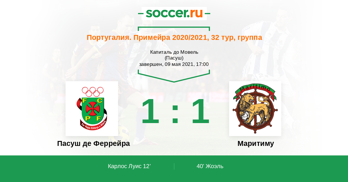 Протокол матча Пасуш де Феррейра против Маритиму