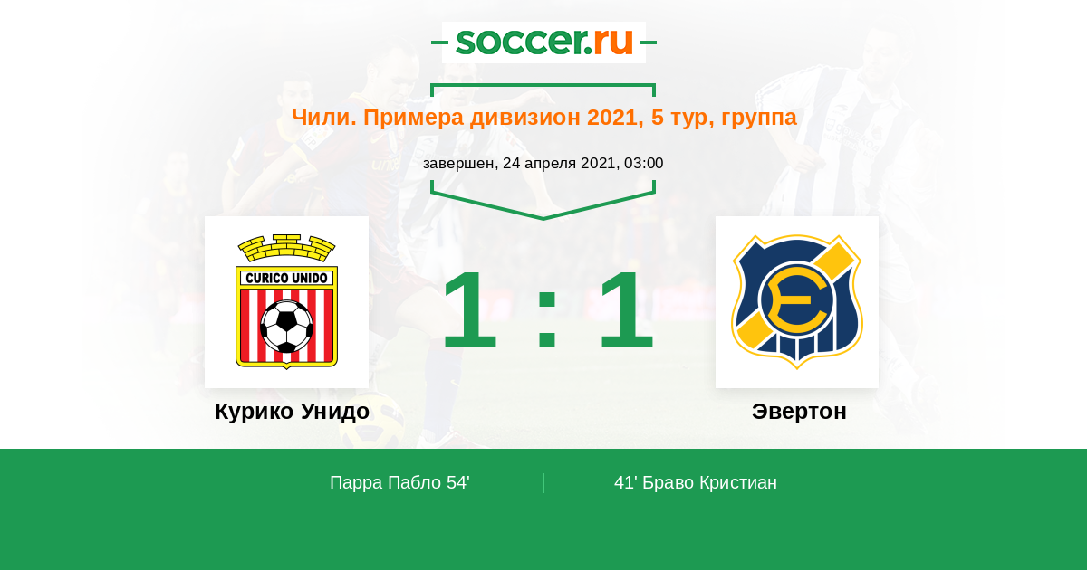 Протокол матча Курико Унидо против Эвертон