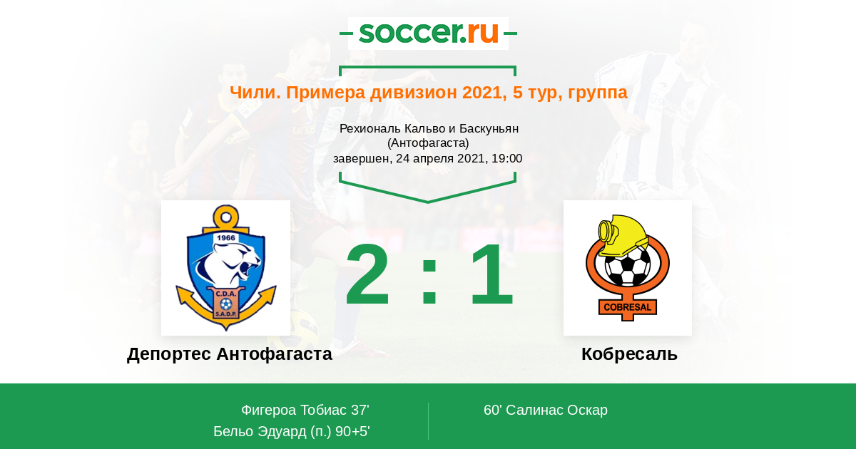 Протокол матча Депортес Антофагаста против Кобресаль