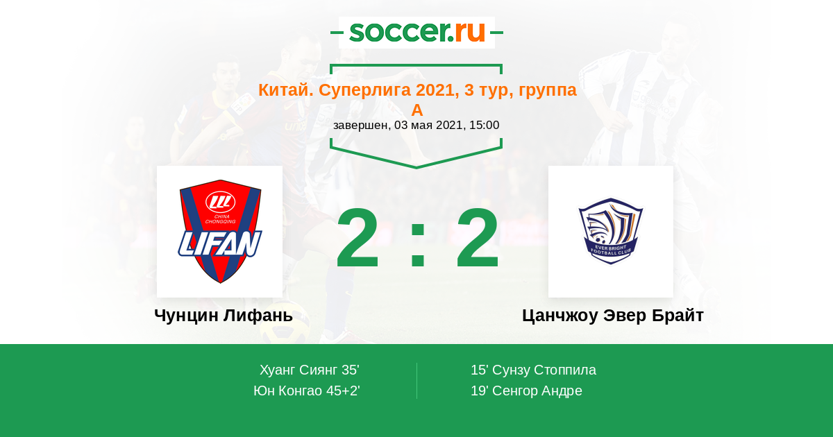 Протокол матча Чунцин Лифань против Цанчжоу Эвер Брайт